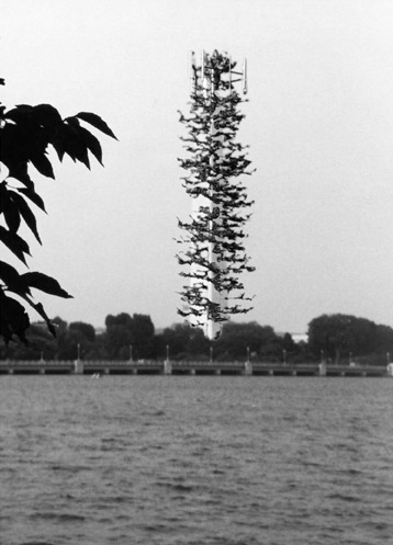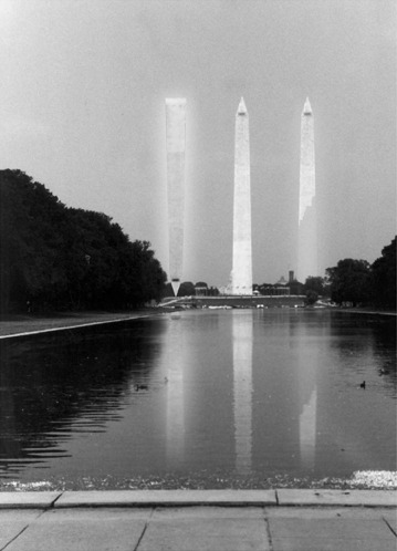 Washington Monument camouflaged as a cellphone tower camouflaged as a tree.