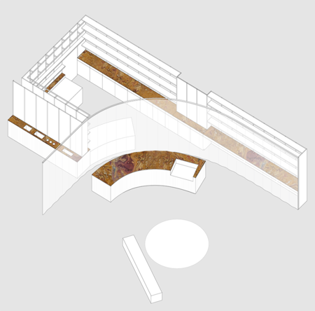 To celebrate the activity and rituals of the daily coffee break, this small coffee bar is reduced to its basic element: a counter where coffee is made and then consumed. The counter, a stone slab in tones of espresso and mocha, snakes through the space, moving from front-of-house to back-of-house and out again.