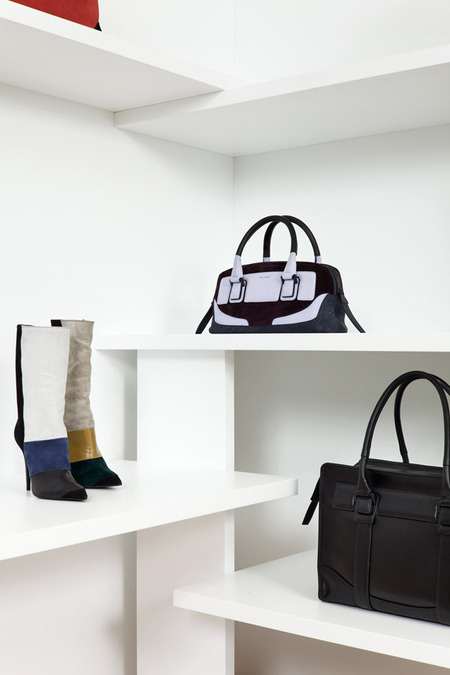 A wall system for the fashion designer Narciso Rodriguez to display a new line of shoes and handbags in the studio’s Manhattan office.